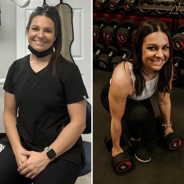 I have always loved sports and fitness in general, but started getting serious about lifting correctly in 2018 after having my daughter. I found myself unrecognizable and wanted to get my confidence back. Once I started being consistent and saw results, I was hooked. I have been weight lifting for years, but have corrected form, gained muscle, and lost fat. I have learned a lot along the way! Getting my certification has only further given me the tools to help others on their journey. I have fallen in love with flexible dieting and resistance training. Flexible dieting has changed my life, and I would love to help you learn to FUEL your body instead of restrict. What is fun about a fitness journey, is you can always get better and learn something new!